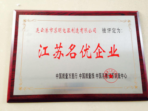在2014年3.15到來之際,連云港市蘇明電器制造有限公司被中國.江蘇品牌市場質(zhì)量監(jiān)督跟蹤調(diào)查中心評為 “江蘇名優(yōu)企業(yè)”。