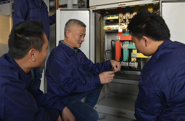 蘇明電器總經(jīng)理周慶忠與職工在一起